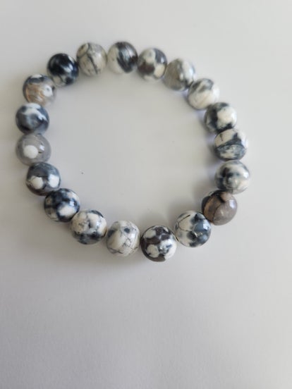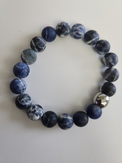 10mm Blue Agate with silver Hematite and silver spacer