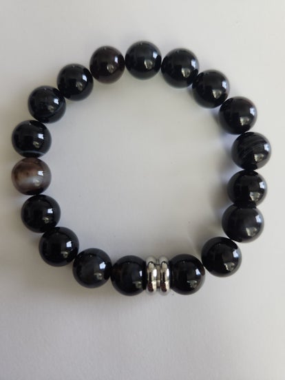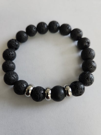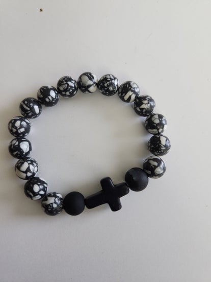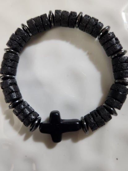 8mm black lava with 12mm black Onyx cross with Hematite