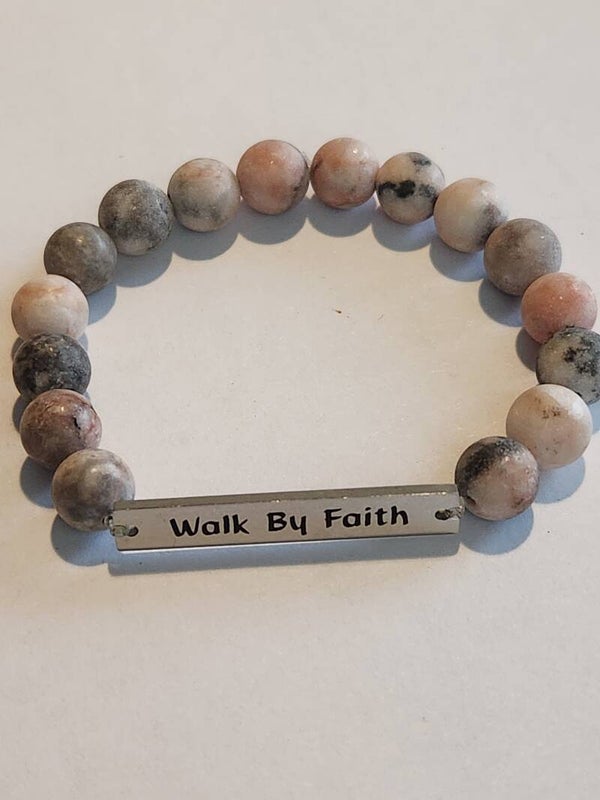 Silver Bar with pink and gray matte zibra gemstone